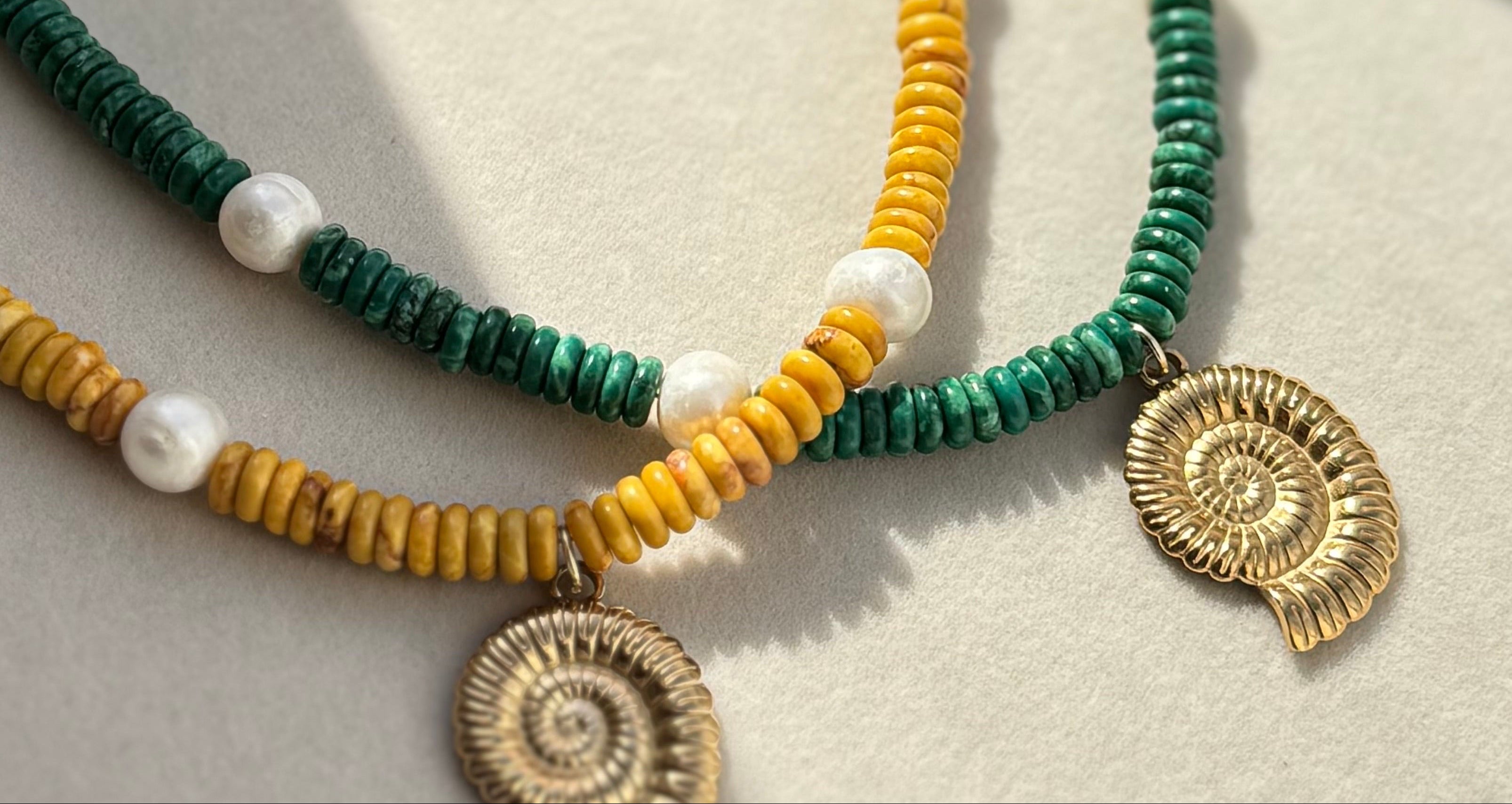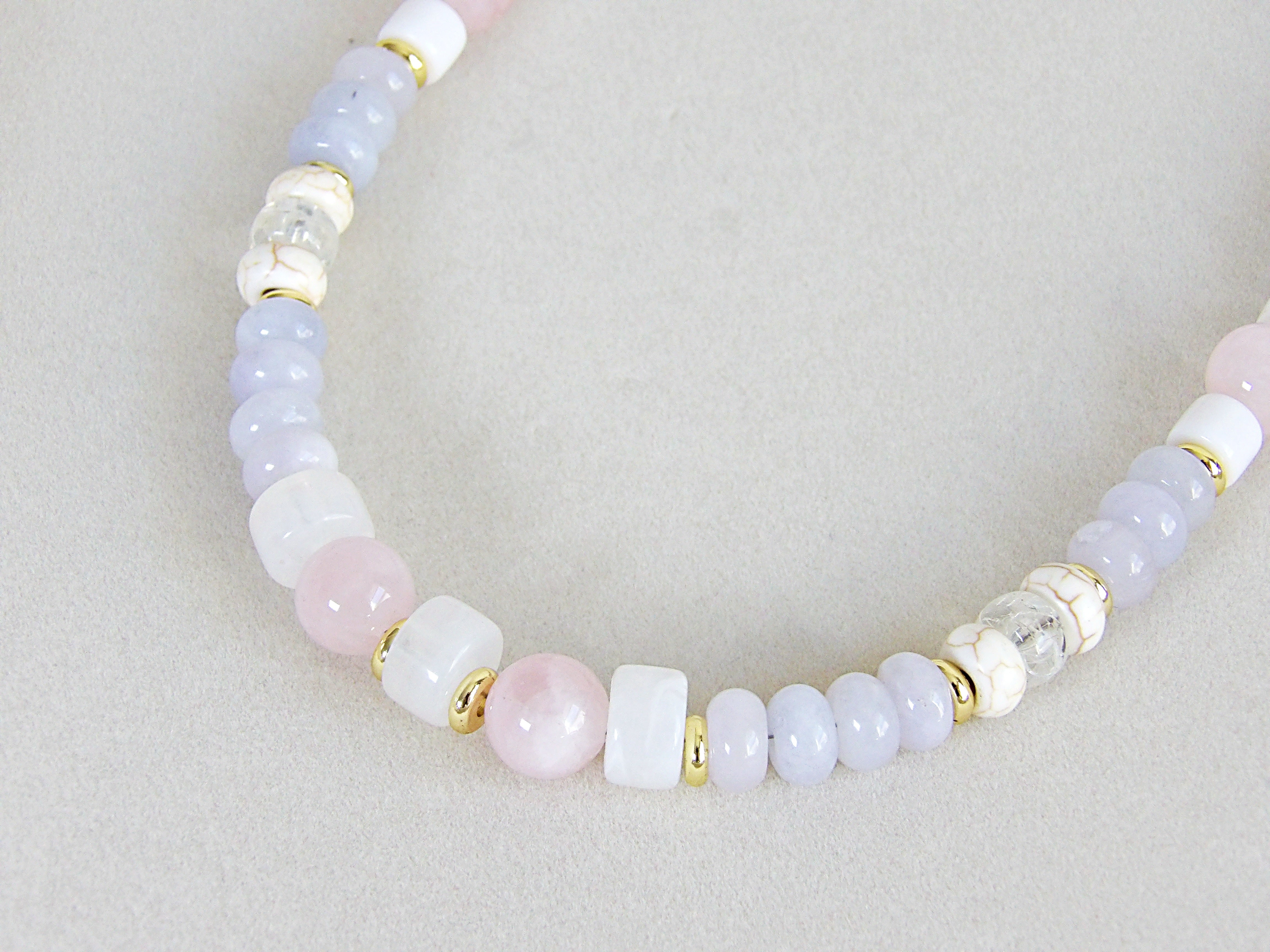 Made with care and unconditionally loved by our customers, this signature piece exceeds all expectations. Designed with soft baby blue shades, blush hues, natural pearls, and gold accents, it combines refined materials in a way that feels both modern and timeless. Its harmonious palette makes it the kind of necklace you reach for again and again — effortless to style, elevated in detail, and the perfect finishing touch to any look.